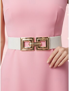 Cinto feminino de nylon elástico com fivela quadrada dourada, disponível em várias cores, perfeito para ocasiões casuais e formais.