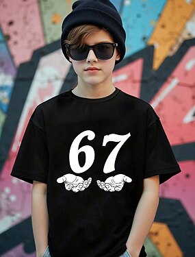 Algodão Infantil Para Meninos Preto Gráfico Gírias engraçadas 67 Camisa Blusa Gola Redonda Manga Curta Ao ar livre Dia a Dia Moda Roupa de rua Designer Estampado Verão