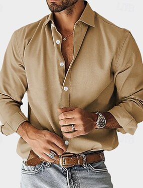 Homens Camisa Social Blusa de cetim Saia Camisa casual camisa de botão Tecido Formal Casamento Preto Branco Vermelho Azul Manga Longa Lapela Todas as Estações Roupa Bloco de cor