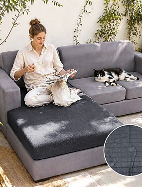 Capas impermeáveis para almofadas de sofá, capas removíveis para almofadas de sofá modular em formato de L, tecido jacquard grosso e elástico, capa lavável para chaise longue com elástico na parte