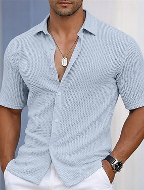 Homens Camisa Social Textura Camisa casual camisa de botão Preto Branco Verde Claro Caqui Verde Tropa Manga Curta Tecido Colarinho de Camisa Casual Diário Vazado Roupa Elegante Moda Casual