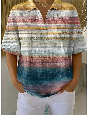 Mulheres Camisa Social Gráfico Geométrica Listrado Vintage Diário à moda Manga Curta Colarinho de Camisa Tops longos Casual Diário Azul Verde Rosa Verão Primavera