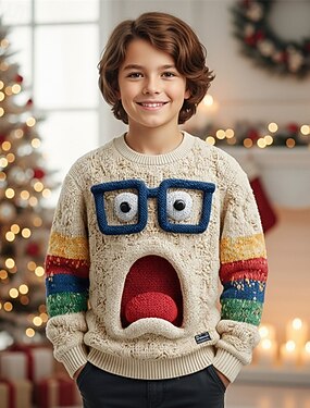 Natal Para Meninos 3D Desenho Animado Suéter de Natal Feio presente de Natal Suéter Manga Longa Impressão 3D Outono Inverno Moda Festa Infantil 4-12 anos Gola Redonda Ao ar livre Diário Normal