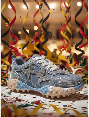 Tênis de Jeans para Mulheres com Enfeites de Borboleta e Detalhes de Strass – Estilosos e Confortáveis Perfeitos para Carnaval Festivais Festas à Fantasia e Declarações de Moda Arrojadas