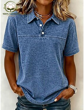 Mulheres Camisa Henley Lavagem ácida Lavagem vintage Côr Sólida Vintage Moda à moda Manga Curta Colarinho de Camisa Tops regulares Casual Praia Azul Amarelo Rosa Roxo Laranja Verão Primavera