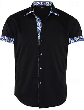 Homens Camisa Social camisa de verão camisa de botão Preto Branco Azul Marinha Azul Claro Manga Curta Floral Bloco de cor Aberto para a Lateral Rua Casual Botão para baixo Roupa Poliéster Esportes