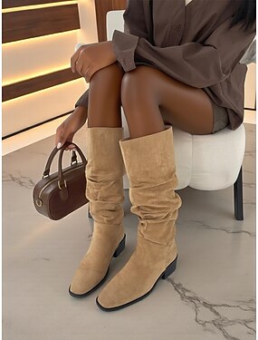 Botas femininas de cano alto, cano alto e cano baixo - botas de camurça sintética estilo retrô, estilo outono, para uso casual diário e fantasias