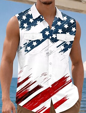 Homens 4 de julho - 250º aniversário dos EUA Bandeira dos EUA Patriótico Camisa Social camisa de botão camisa sem manga Sem Manga Moda Casual Feriado Verão Primavera Aberto para a Lateral Dois bolsos
