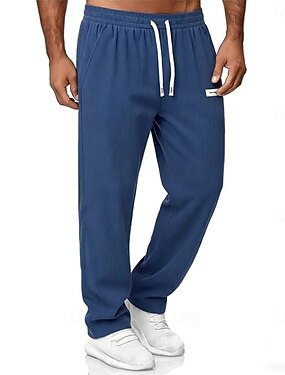 Homens Calças de linho Calças Calça verão Calças de praia Bolso frontal Perna reta Tecido Conforto Respirável O negócio Casual Diário Moda Férias Preto Branco