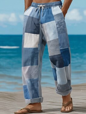 Homens Geométrica Bloco de cor Retalhos Calças Calça casual Calças largas Cintura Média Moda Casa Ao ar livre Férias Cintura elástica com cordão Calças de linho com bolsos Verão Primavera Impressão 3D