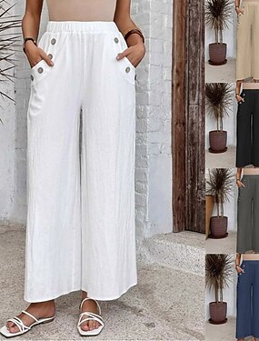 Mulheres Linho de algodão sintético Calças Calça verão Calças largas Férias Moda Roupa de rua Mimolet Cintura Alta Tecido Com Cordão Bolsos Cintura elástica Conforto Macio Respirável Sem Elasticidade