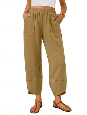 Mulheres Perna larga Social Moda Roupa de rua Comprimento total Natural Tecido Bolsos Cintura elástica Confortável O negócio Escritório Trabalho Preto Bege Café Outono Normal