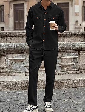 Homens Jaqueta de Camisa Jaqueta casual Férias Diário Manter Quente Bolsos Outono Inverno Tecido Moda Clássico Lapela Padrão Preto Vinho Azul Royal cáqui Cinzento Claro Casaco