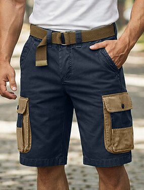 Homens Calças de carga Bermuda Cargo Calção Shorts casuais Bolsos Cintura elástica Tecido Cor Única Comprimento do joelho Casual Ao ar livre Streetwear Moda Roupa de rua Preto Azul Marinha Sem