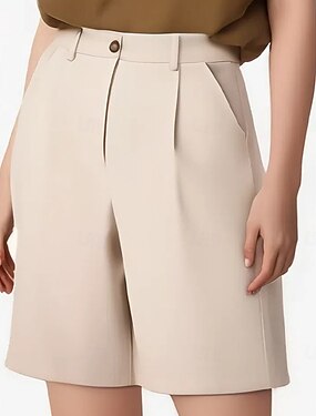 Mulheres Bermudas Calção Shorts de verão Vintage Moda Casual Diário Comprimento do joelho Cintura Alta Côr Sólida Tecido Bolsos Perna reta Conforto Leve Macio Sem Elasticidade Streetwear Escritório