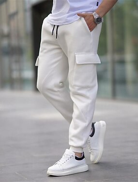Homens Calças Calça casual Bolsos Com Cordão Cintura elástica Tecido Conforto Diário Férias Para Noite Moda Casual Preto Branco Micro-Elástica