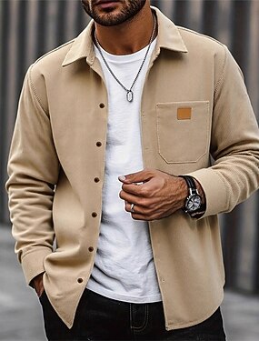 Homens jaqueta leve Jaqueta de Veludo Jaqueta casual Jaqueta de trabalho Casual Diário Bolsos Primavera Outono Tecido Roupa de rua à moda Aberto para a Lateral Padrão Preto cáqui Cinzento Casaco