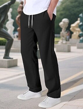 Homens Social Calças Calças de Terno Bolsos Com Cordão Cintura elástica Tecido Conforto Resistente a rugas Comprimento total Casamento Festa O negócio Moda Básico Preto Branco