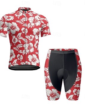 Homens Camisa de ciclismo com shorts Manga Curta Ciclismo de Montanha Ciclismo de Estrada Verão Primavera Outono Preto Vermelho Azul Marinho Botânico floral Moto Zíper Frontal Redutor de Suor