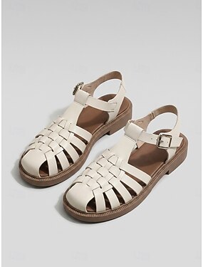 Sandálias rasteiras gladiadoras femininas – modelo fechado com tiras trançadas, estilo boho romano respirável, perfeitas para praia, férias na ilha e resorts de verão.