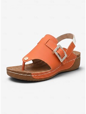 Sandálias femininas de plataforma com fivela de strass laranja, tira ajustável, modelo de verão, confortáveis e casuais, ideais para uso diário e viagens. &passeio no jardim