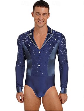 Collant masculino azul royal para dança de salão latina - modelo com strass e zíper, ideal para salsa e cha cha. & desempenho
