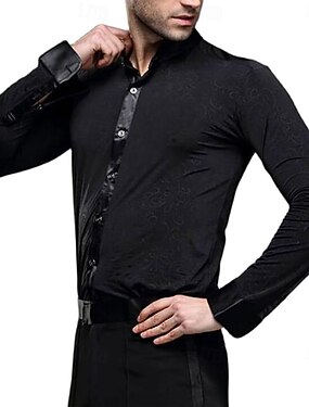 Camisa masculina preta para dança de salão latina - modelo slim fit com jacquard em relevo, ideal para salsa, tango e apresentações.