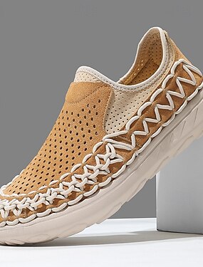 Sapatos masculinos bege perfurados, modelo slip-on, leves e respiráveis, ideais para o escritório, eventos informais, atividades ao ar livre, confortáveis, estilosos e perfeitos para casamentos.
