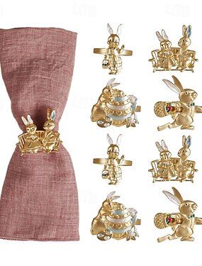 Conjunto de 4/8 porta-guardanapos de coelho da Páscoa, 4 modelos sortidos, porta-guardanapos de coelho em metal dourado, coelho decorativo. &Conjunto de enfeites de mesa em formato de fivela para