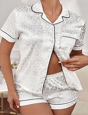 Mulheres Loungewear Conjunto de Pijama Moda Casual Macia Gráfico Patchwork Botões Calção Casa Férias Manga Curta Decote V Preto Branco Rosa Dourado Verão Primavera Outono Normal