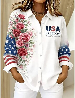 Mulheres Camisa Social Botões Imprimir Floral Gráfico Vintage à moda Moderno Manga Longa Colarinho de Camisa Tops regulares Diário Branco Verão Primavera