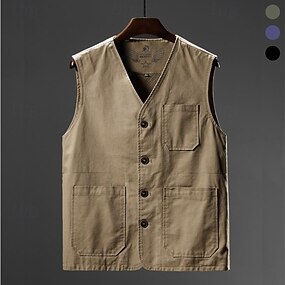Regata masculina vintage 100% algodão com lavagem ácida, camiseta sem mangas, camiseta regata sem mangas estilo henley, camiseta básica de verão lisa, de grife, com bolsos e botões, para férias, estilo urbano, preta, para homens.