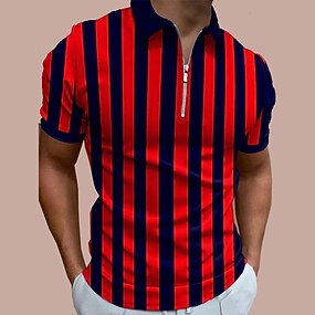 Homens Camisa de boliche pólo de golfe Casual Diário Quarter Zip Manga Curta Moda Moderno Riscas Fashion Quarter Zip Verão Normal Branco Vermelho Azul Marron Verde Cinzento Escuro Camisa de boliche
