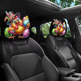 Conjunto de 2 capas para encosto de cabeça com estampa de coelhinho da Páscoa, pintinho e flores. Ajuste perfeito, laváveis, fáceis de instalar e ideais para viagens de carro, férias em família e