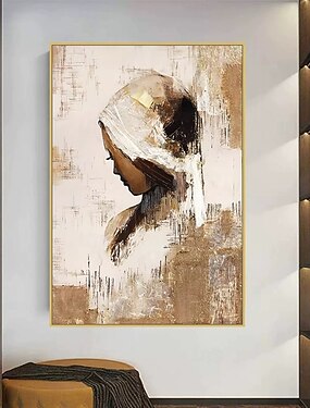 Pintura a óleo artesanal em tela, arte de parede, figura abstrata, menina bonita africana para decoração de casa, pintura sem moldura rolada e não esticada
