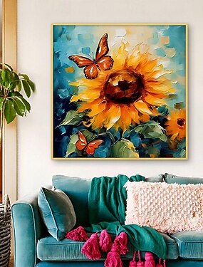 mintura pinturas a óleo de flores feitas à mão em tela arte de parede decoração moderna abstrata imagens de girassol para decoração de casa pintura sem moldura enrolada e não esticada