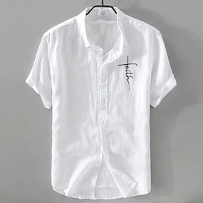 Homens Camisa de linho Camisa casual Camisa de algodão e linho camisa de botão Padrão Férias Rua Preto Branco Rosa Azul Marinho Escuro Manga Curta Lapela Verão Roupa Botão para baixo