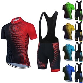 Homens Camisa com Bermuda Bretelle Manga Curta Ciclismo de Montanha Ciclismo de Estrada Verão Primavera Vermelho Verde Riscas Moto Tapete 3D Secagem Rápida Bolso Traseiro Pavio Humido Respirável