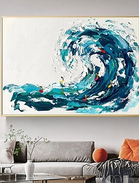 Pintura a óleo artesanal arte da parede da lona decoração abstrata marinha pintura grandes ondas azuis para decoração de casa rolada sem moldura pintura não esticada