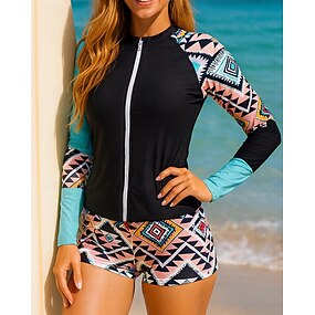 Mulheres Anti Atrito Maiô com estampa floral Roupa de banho Bloqueio de cores Proteção UV Manga Longa Roupa de Banho Surfe Snorkeling Natação Verão