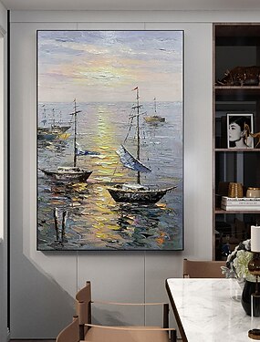 Pintura a óleo feita à mão em tela impressão de arte de parede impressão cenário europeu de cidade litorânea para decoração de casa pintura enrolada sem moldura não esticada