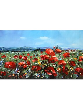 Pintura a óleo pintada à mão arte de parede abstrata flores vermelhas pintura em tela decoração de casa decoração moldura esticada pronta para pendurar