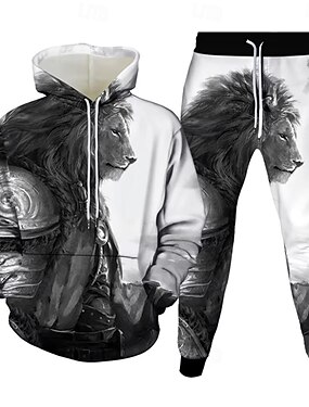 Homens Leão 2pcs Conjuntos de moletom 3D Moletom Moletom com capuz Manga Longa Calças compridas Com Capuz Casual Diário Roupa Esportiva Impressão 3D Primavera Outono Inverno Branco