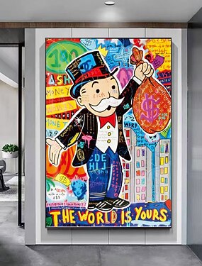 pintura a óleo pintada à mão artesanal parede pintura abstrata moderna alec monopólio arte de rua dinheiro pintura em tela decoração para casa decoração em tela enrolada sem moldura não esticada