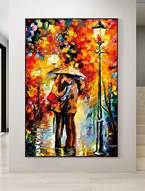 pintura a óleo pintada à mão feita à mão parede moderna abstrata pintura de casal chuvoso pintura de canivete arte em tela pintura decoração de casa lona enrolada sem moldura não esticada