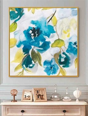 Pintura a óleo pintada à mão arte da parede flores azuis decoração para casa decoração lona rolada sem moldura não esticada