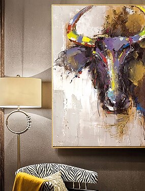 Pintura a óleo artesanal lona decoração da arte da parede animal moderno búfalo para decoração de casa rolou sem moldura pintura não esticada