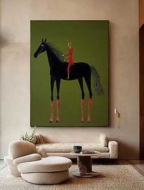 cavalo abstrato vintage &Arte em tela com figura em verde-oliva, texturizada, para parede, pintura minimalista de figura humana, grande obra de arte surreal de cavalo para sala de estar.