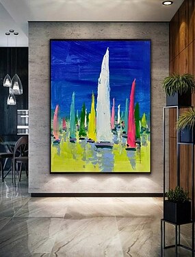 Pintura a óleo pintada à mão, impressão de arte de parede pintada à mão, pintura em tela de paisagem, decoração de casa, moldura esticada, pronta para pendurar