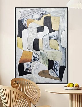 Pintura a óleo feita à mão em tela, arte de parede moderna com blocos de cores e textura abstrata para decoração de casa, com moldura para pendurar ou enrolada, sem moldura e sem esticar.